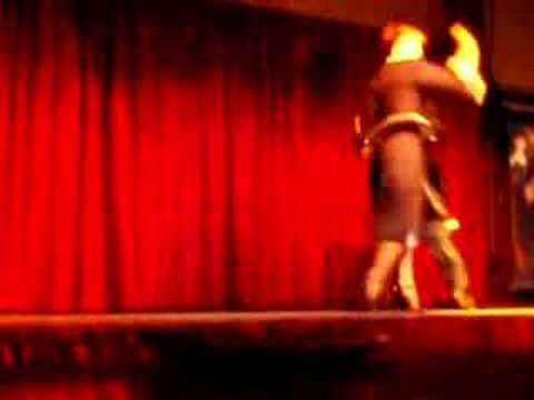 Los profesores de Tango de los viernes del Club Europeo, Cecilia Gonzales y Gustavo Días, bailando en la confiteria Ideal, en el show "Una Noche Ideal"